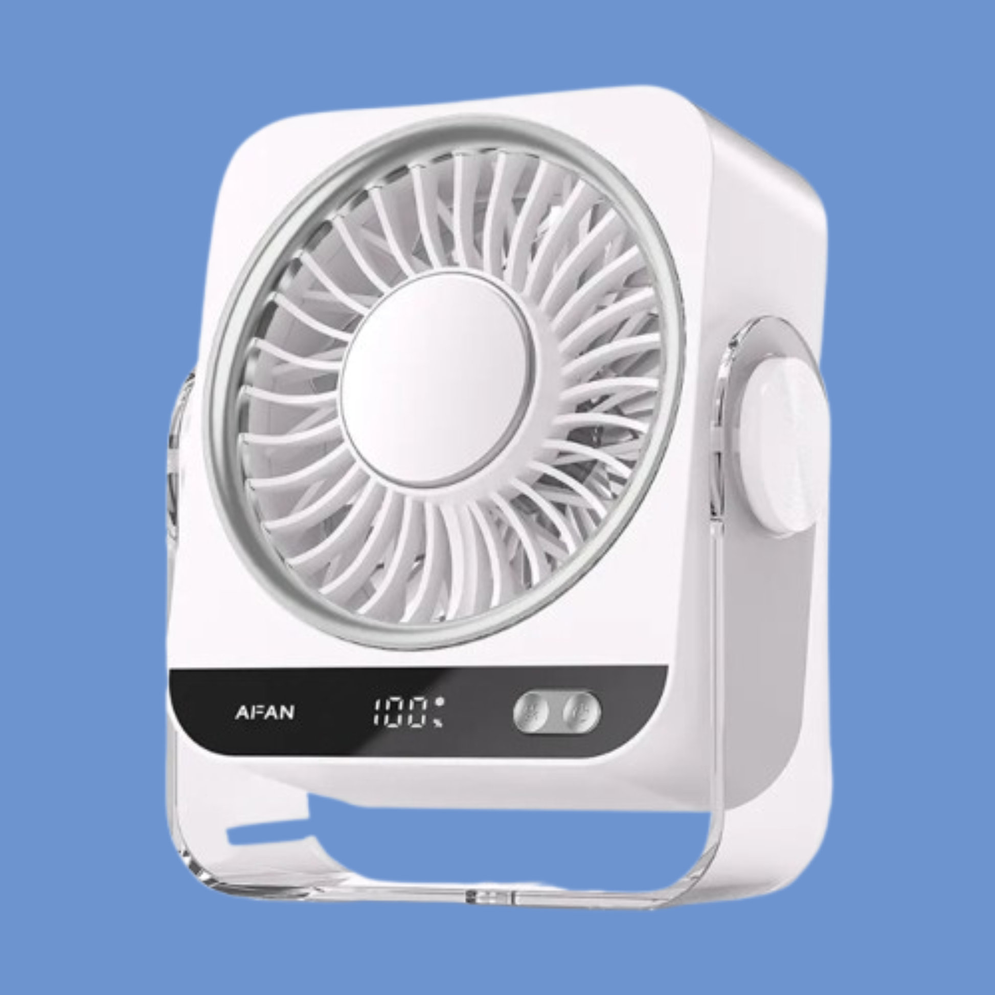 Compacto, versátil y con rotación de 270°, puede colocarse en escritorio o montarse en pared, adaptándose a cualquier espacio. Incluye pantalla LED para controlar velocidad y batería en tiempo real, y un funcionamiento ultra silencioso perfecto para descanso, trabajo o habitaciones de bebé.
